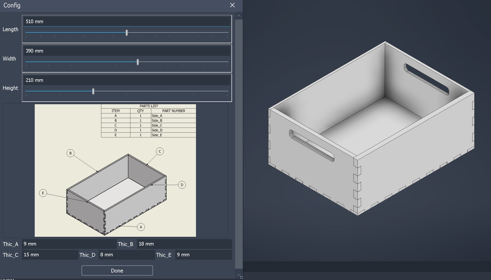 Explaining how I designed the part in Inventor using iLogic is beyond the scope of this article because it could be an entire course on its own. To confirm that the box is parametric, you can refer to Figures 1 & 2.